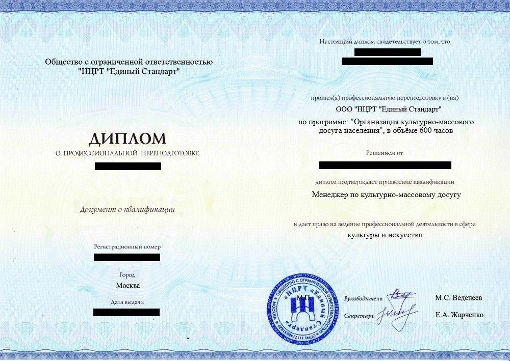 - Диплом о профессиональной переподготовке установленного образца