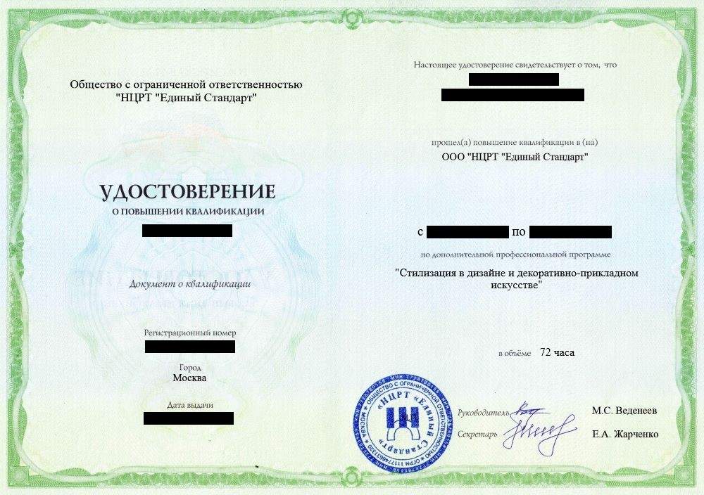 - Удостоверение о повышении квалификации установленного образца