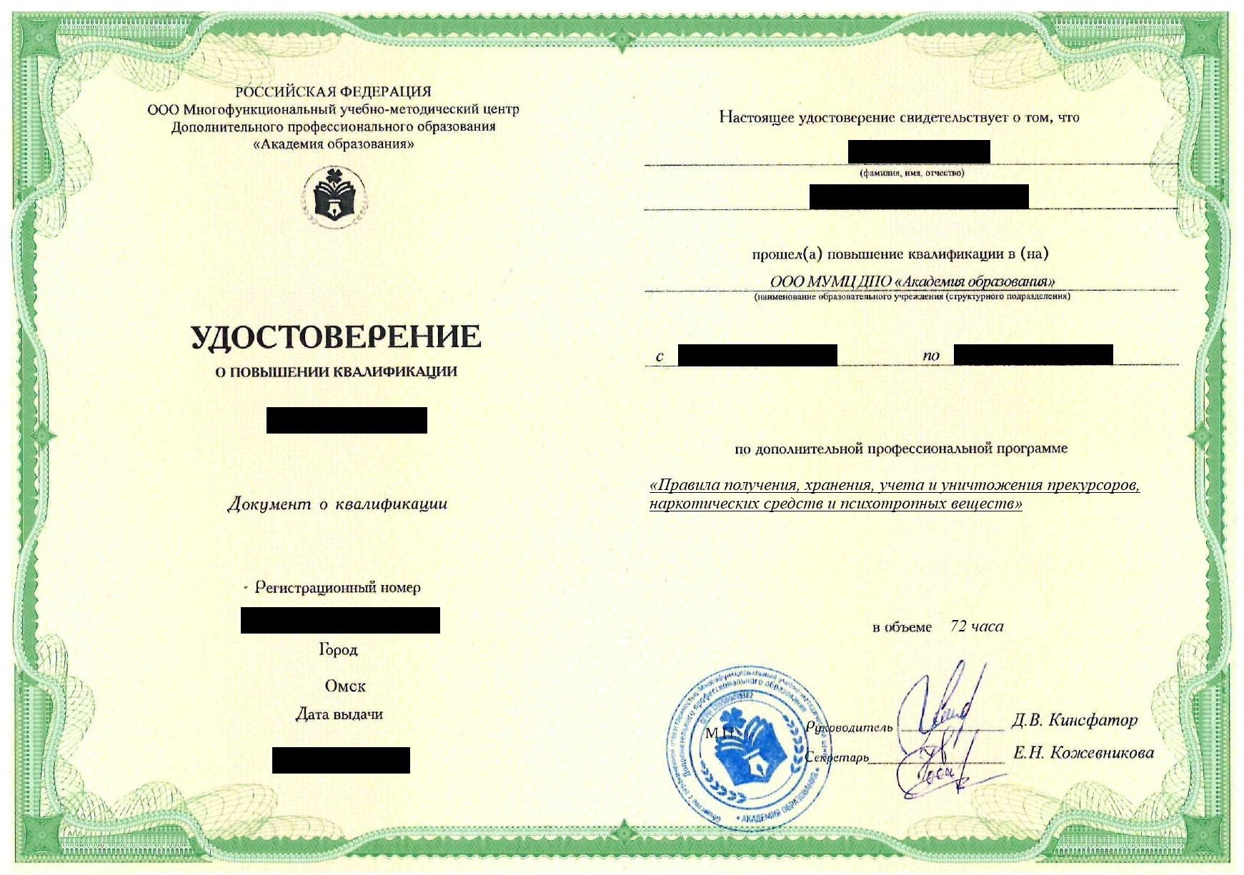 - Персонала, участвующего в получении, хранения, учете и уничтожения прекурсоров, наркотических средств и психотропных веществ