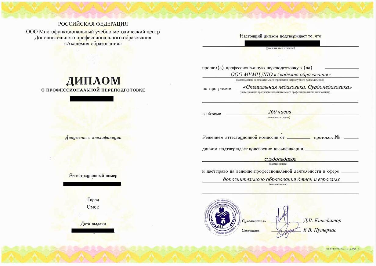 • Диплом о профессиональной переподготовке установленного государством образца. Срок действия: бессрочно