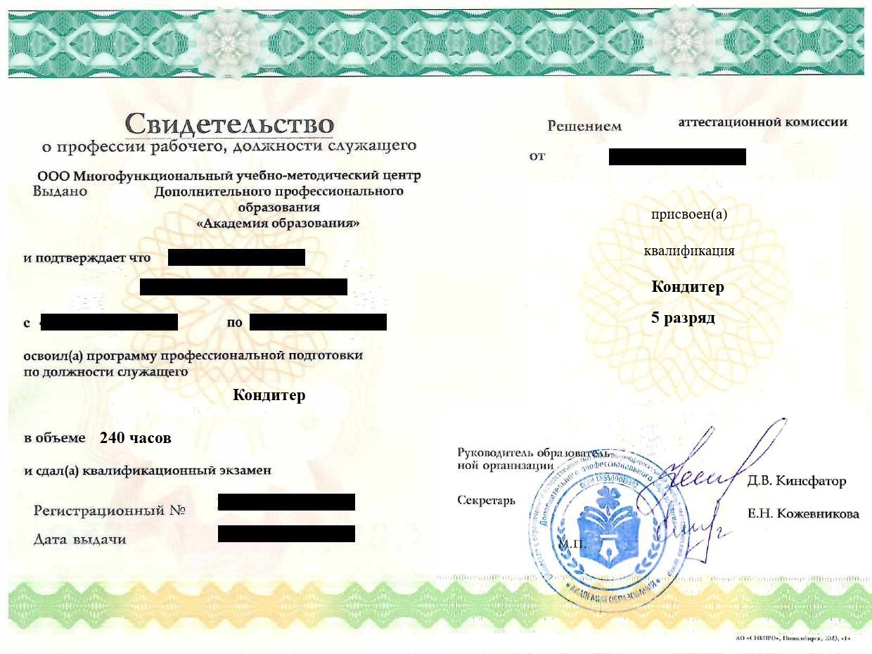 «Кондитер» (3-5 разряд)